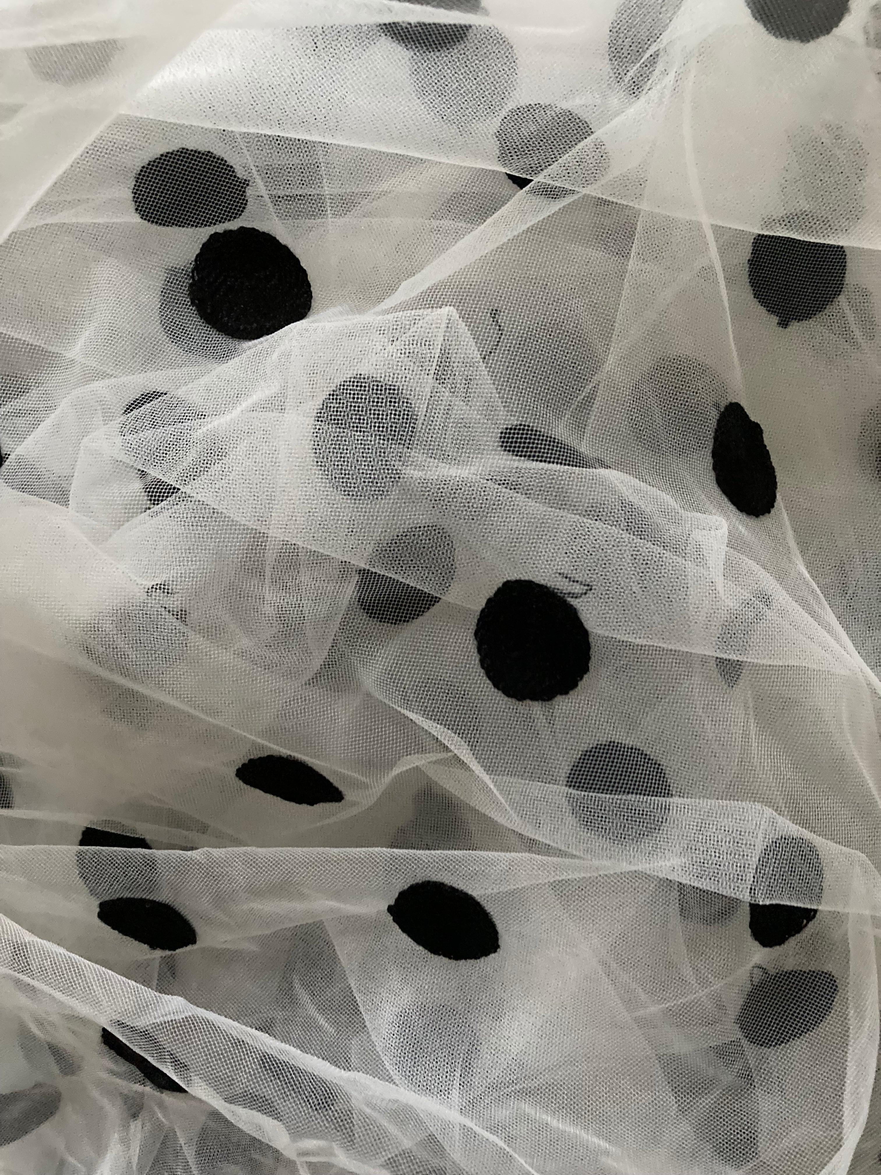 チュールにドットの刺繍